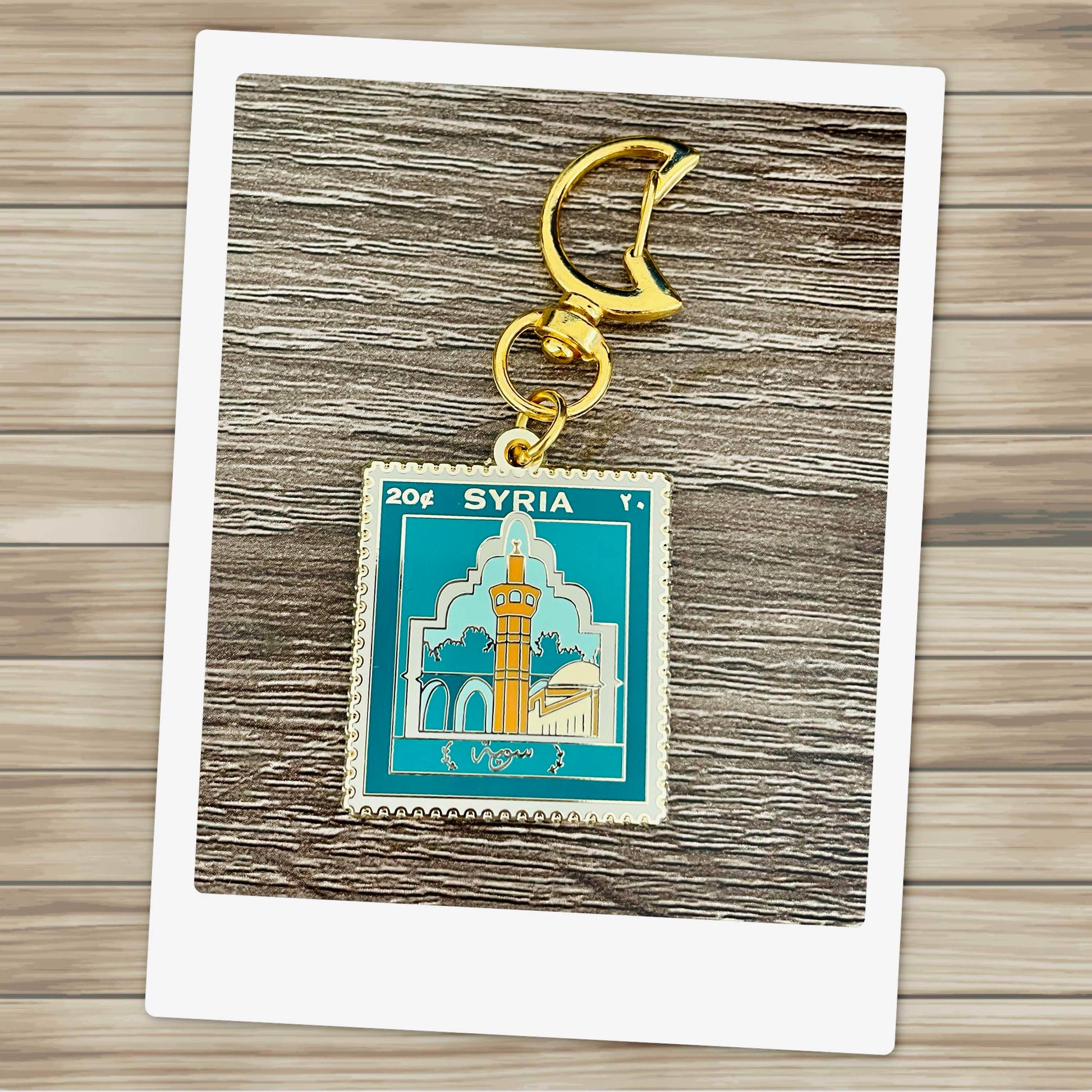Syria Keychain | Umayyad Mosque Gold Enamel Keyring | Damascus Stamp-Inspired Design | Middle Eastern Gift | Islamic Heritage Keychain